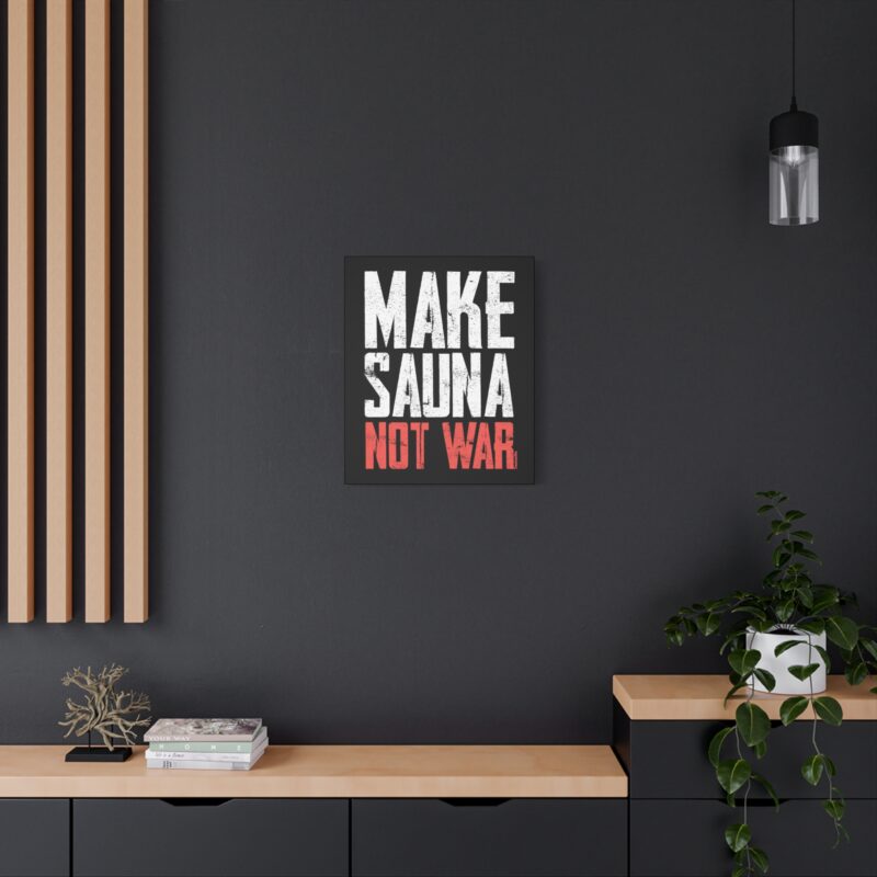 Turn up the heat and turn down the conflict with the Make Sauna, Not War canvas print! A playful twist on the iconic phrase, this design is all about spreading peace, relaxation, and the joy of a good sauna session. The world could use less stress and more steam, and this artwork is the perfect reminder to keep things calm and cozy.