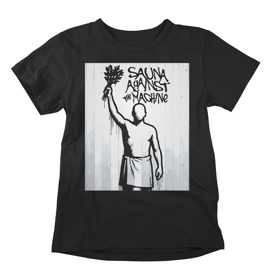 Sauna Against the Machine – a sauna t-shirt with serious heat. Fight the system, one löyly at a time. Sauna Against the Machine is a bold sauna t-shirt for those who know the true revolution starts in the steam room.
