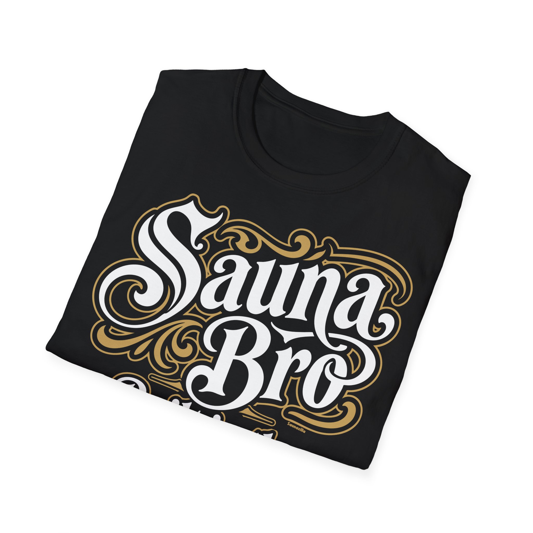 This sauna lifestyle t-shirt carries the aesthetic weight of a heritage brand and the attitude of someone who has never once been the first person to leave the bench. The ornate gold filigree, the blackletter script, the quiet confidence of four words that say everything — this is a sauna tee that doesn’t shout. It simply states the facts.