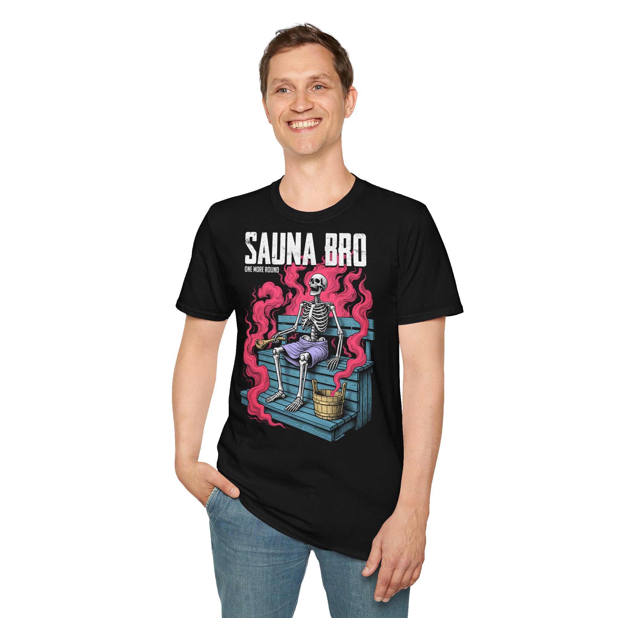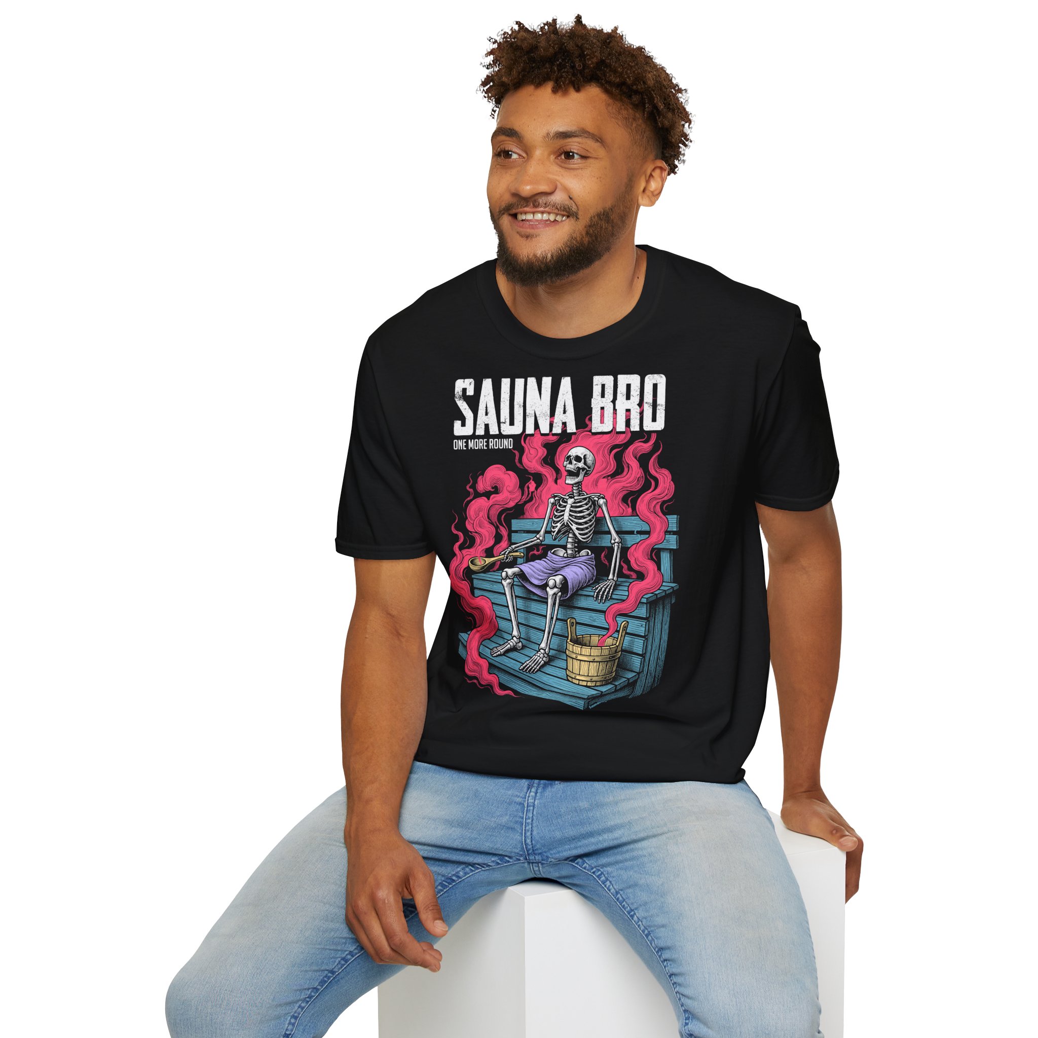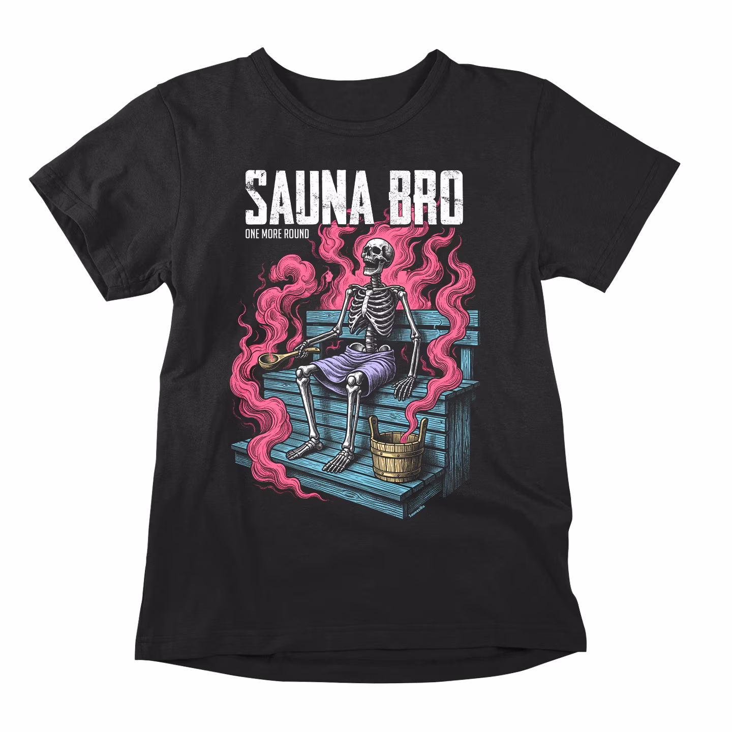 This funny sauna lifestyle tee is the logical conclusion of that commitment — a skeleton, towel still modestly in place, ladle still gripped with purpose, sitting on the top bench as pink steam swirls around bones that have long since made peace with the temperature. Still here. Still going. One more round.