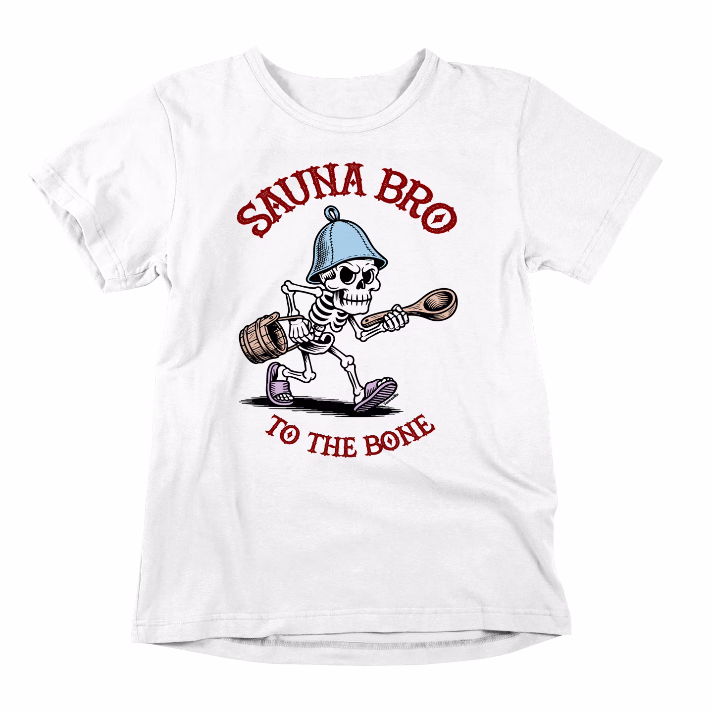 This sauna lifestyle tee brings old-school tattoo americana energy to the hot room — a white tee with vintage charm and a punchline that works on two levels simultaneously. It’s a sauna t-shirt for the lifer. The one whose identity is so thoroughly wrapped up in the sauna that at this point it’s structural. It’s in the bones. It’s literally in the bones.