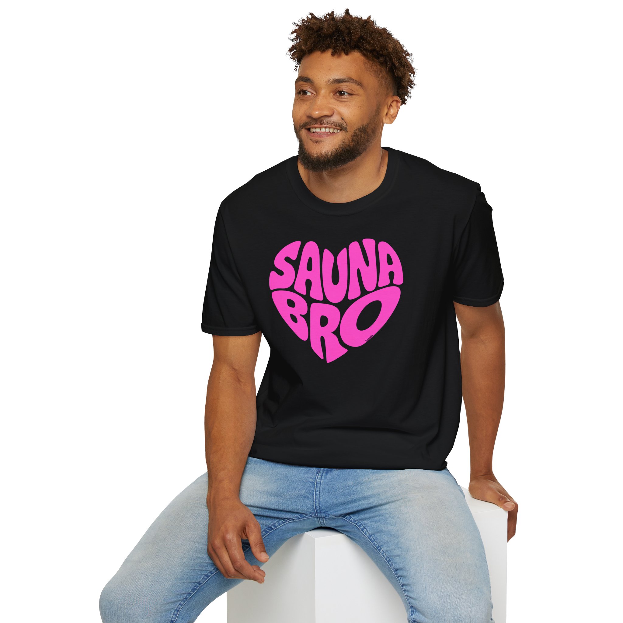 This sauna lifestyle tee leans all the way into it. Hot pink. Retro bubble font. A heart so bold it can be read from across the changing room. Because why pretend the obsession is casual? You don’t casually love the sauna. You love it loudly, warmly, and at approximately 85 to 100°C depending on your mood.