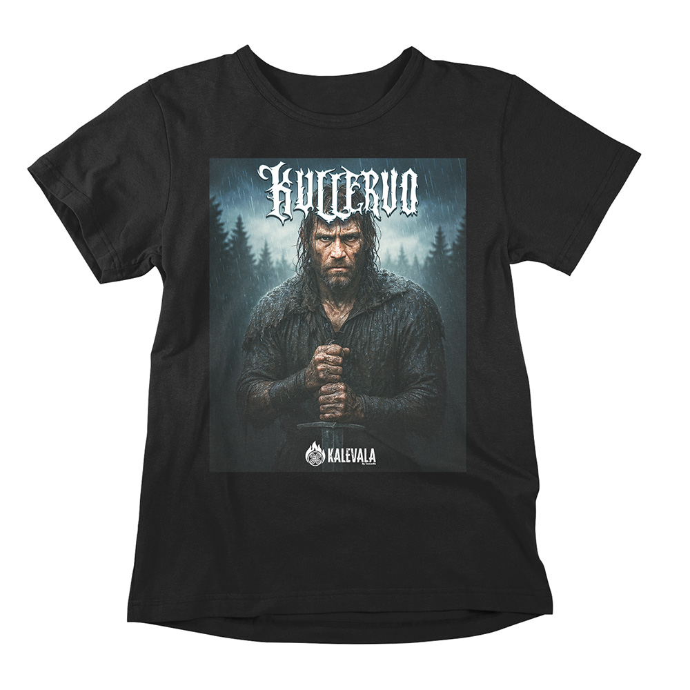 Rujonkaunis Kullervo-paita yhdistää kansalliseepoksen syvimmät sävyt urbaaniin paitatyyliin. Unisex-malli sopii kaikille, jotka kantavat mukanaan ripauksen melankoliaa, mytologiaa, ja suomalaista sielunmaisemaa.