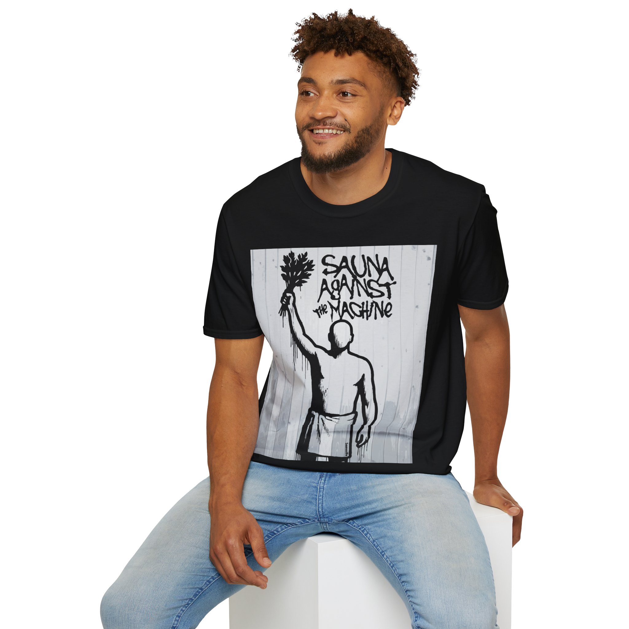 Kun koneisto puskee niskaan, yksi vastavoima pysyy vahvana: sauna. Sauna against the machine on sauna t-paita, joka huokuu kapinaa, kuumuutta ja vimmattua löylyä.